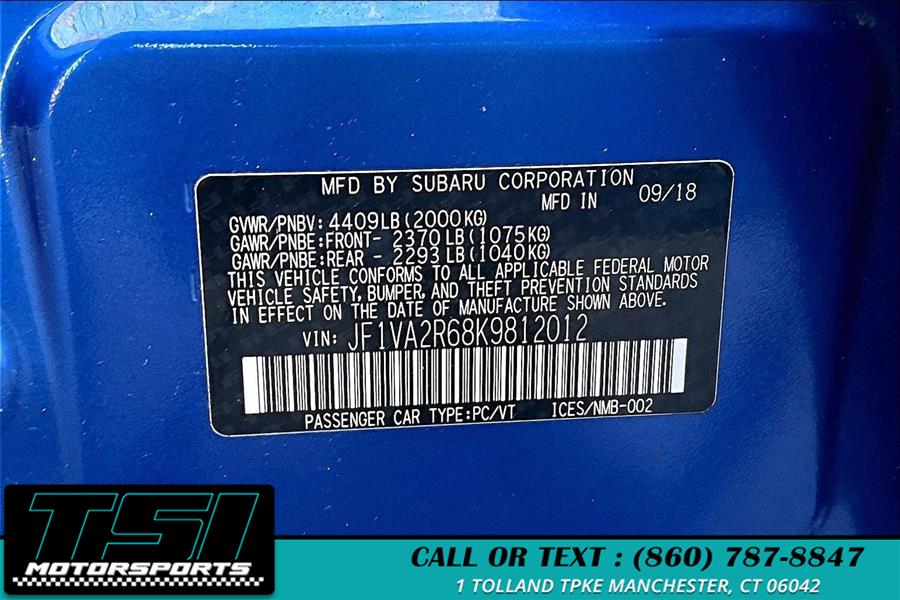 2019 Subaru WRX STI Manual, available for sale in Manchester, Connecticut | TSI Motorsports. Manchester, Connecticut
